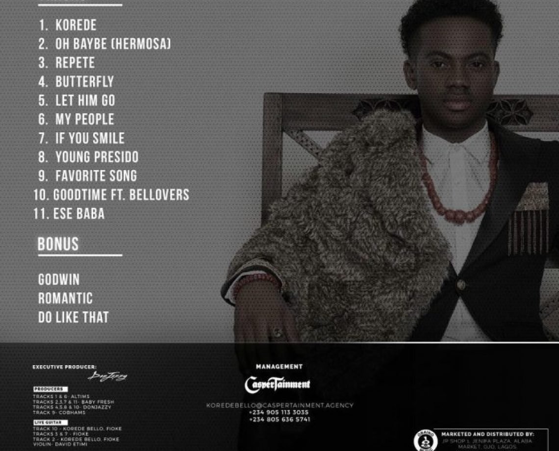 Finally, Korede Bello has revealed the track list for his ‘Belloved’ album which will drop tomorrow. The mega superstar unveiled his album track list to his over 2M followers on instagram.