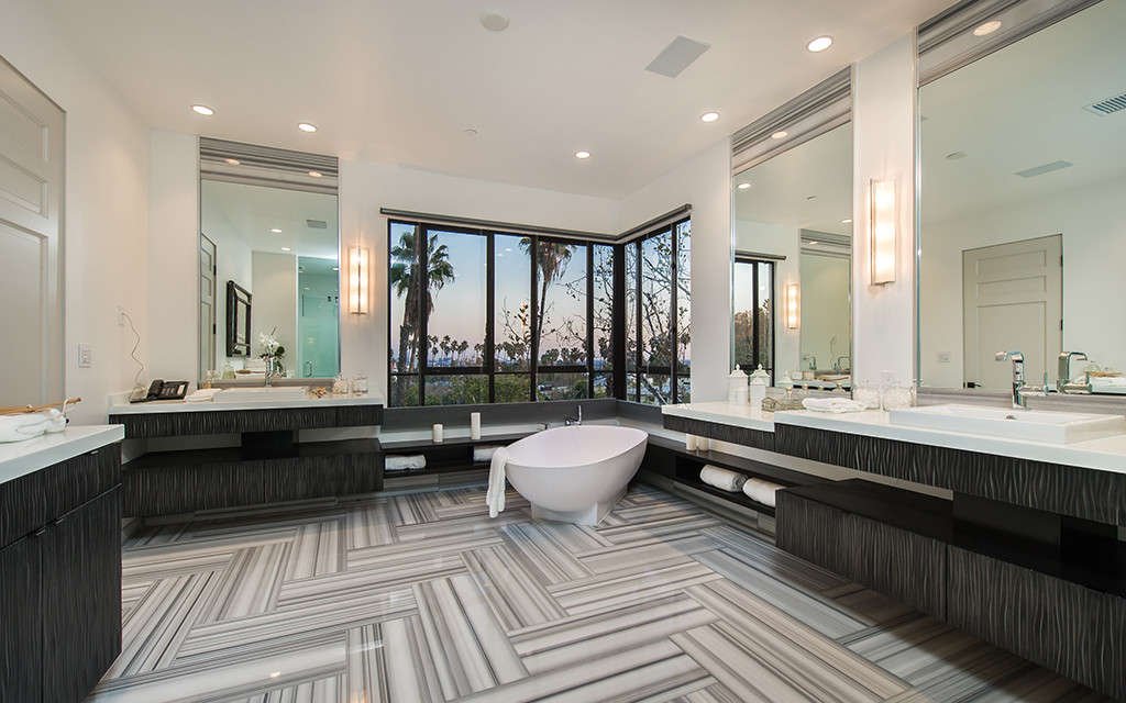 The songstress’ new home rivals even the most luxurious of celebrity homes. The newly refurbished 7,200 sq ft Old Hollywood estate boasts six bedrooms and ten bathrooms, and 18,000 sq ft of space in total. It also has an expansive master suite which features an en-suite lounge with custom Ebony wood vaulted ceilings, fireplace and floor-to-ceiling windows leading out to a private balcony.