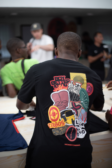 Also appearing at the pop-up on Sunday was the winning designer from HOMECOMING’s #HomecomingNewDesigner contest (held earlier this week). Young streetwear designer DIMEJI EZEKIEL was chosen from hundreds of applicants, with his graphic-led designs featured at the Pop-Up alongside some of the world’s most essential brands.